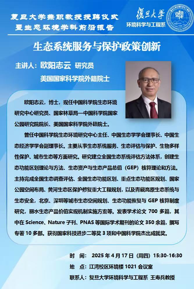 复旦大学兼职教授授聘仪式暨生态环境学科前沿报告——生态系统服务与保护政策创新