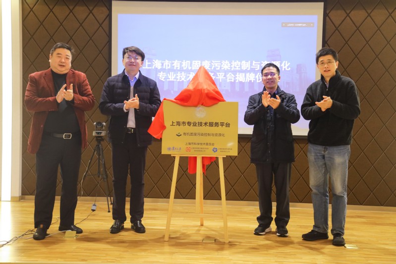 随后举行了上海市有机固废污染控制与资源化专业技术服务平台揭牌仪式,由复旦大学徐雷副校长、上海市科委研发基地建设与管理处毕聪处长、上海市绿化市容局唐家富副局长、五角场集团崔勇总经理共同揭牌。