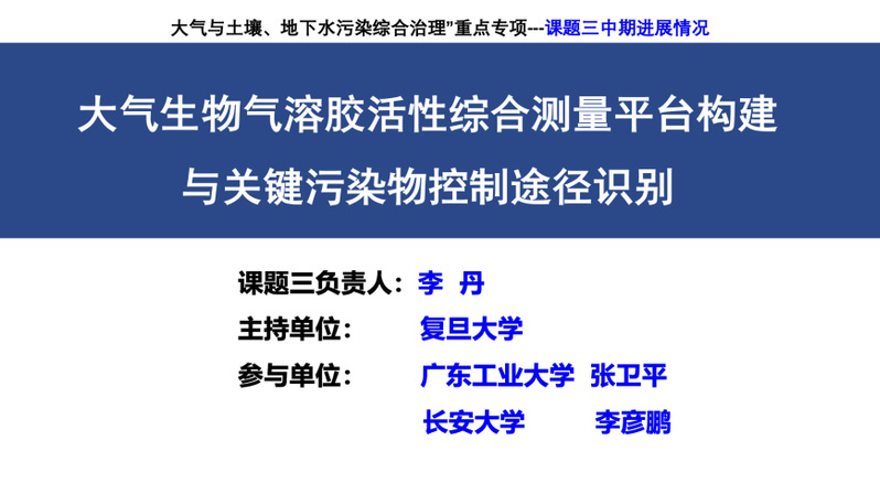 2025年6月16日,由复旦大学主持的国家重点研发计划“环境大气生物气溶胶暴露特征和健康风险防控”课题三“大气生物气溶胶活性综合测量平台构建与关键污染物控制途径识别”中期进展研讨会线上会议顺利召开。会议由课题负责人李丹教授主持,来自复旦大学、广东工业大学、长安大学等单位的40余位专家学者和同学线上参会。