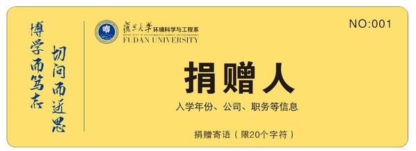 复旦校园里的求学生涯,抑或让您遇到敬仰的老师,抑或让您找到一群志同道合的伙伴,抑或曾点燃您的梦想,抑或曾为您的事业发展打下基础,为您今天的成就铺平了道路。如今,期待各位校友能不吝热情地回馈母校,帮助更多的学生追求他们的环境梦想!你们的慷慨捐助将帮助那些和你们一样、对环境学科怀有热情的学生展现才华,成为未来的环境领导者!