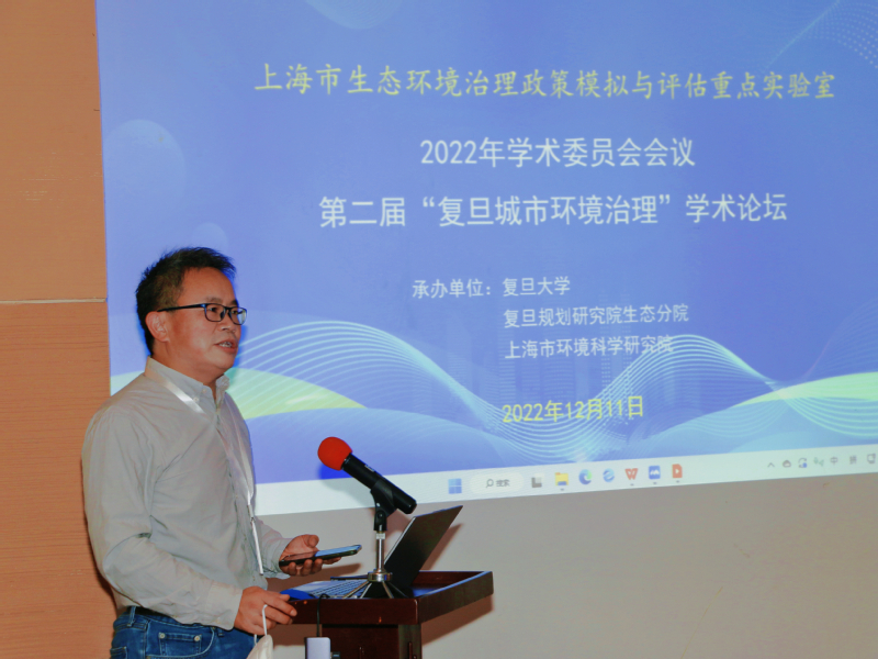 2022年12月11日,上海市生态环境治理政策模拟与评估重点实验室(以下简称“实验室”)2022年学术委员会会议暨第二届“复旦城市环境治理学术论坛”于上海市宝隆宾馆召开。会议主题是“人与自然和谐共生现代化下的环境治理”。上海市生态环境局科技处、复旦大学文科科研处、复旦大学发展研究院、Bet365中文版app-Bet365手机版下载 、复旦大学经济学院、上海复旦规划建筑设计研究院生态与环境规划设计分院、上海市环境科学研究院、碳启城科技(上海)有限公司有关领导到会并发言。会议特邀生态环境部规划院总工万军研究员等四名嘉宾发表主旨演讲,实验室成员、学术委员会委员以及其他专家、老师和同学共同参会。