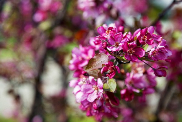 紫花海棠的花朵颜色鲜艳,形状优美,是庭院中常见的观赏植物。它的花朵在春季开放,花期较长,能给人带来视觉上的享受。同时,紫花海棠的叶子也有一定的观赏价值,秋季时叶子会变成红色,增添了庭院的色彩。