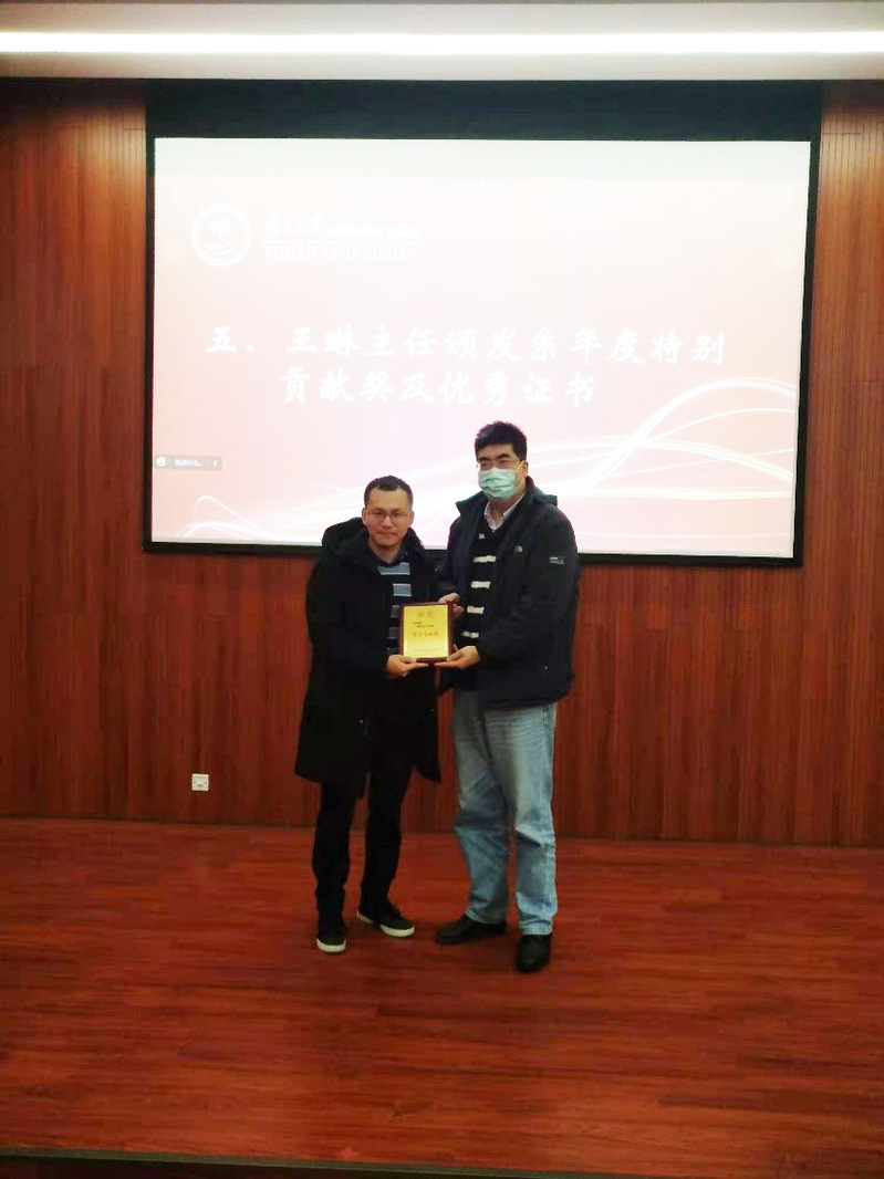 系主任王琳老师为“年终考核优秀奖”获得者颁奖