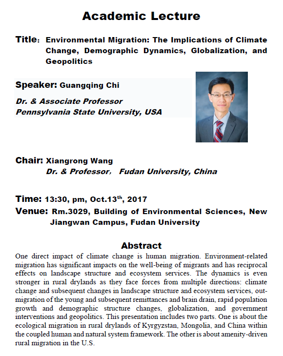 【学术报告】Environmental Migration: The Implications of Climate Change, Demographic Dynamics, Globalization, and Geopolitics