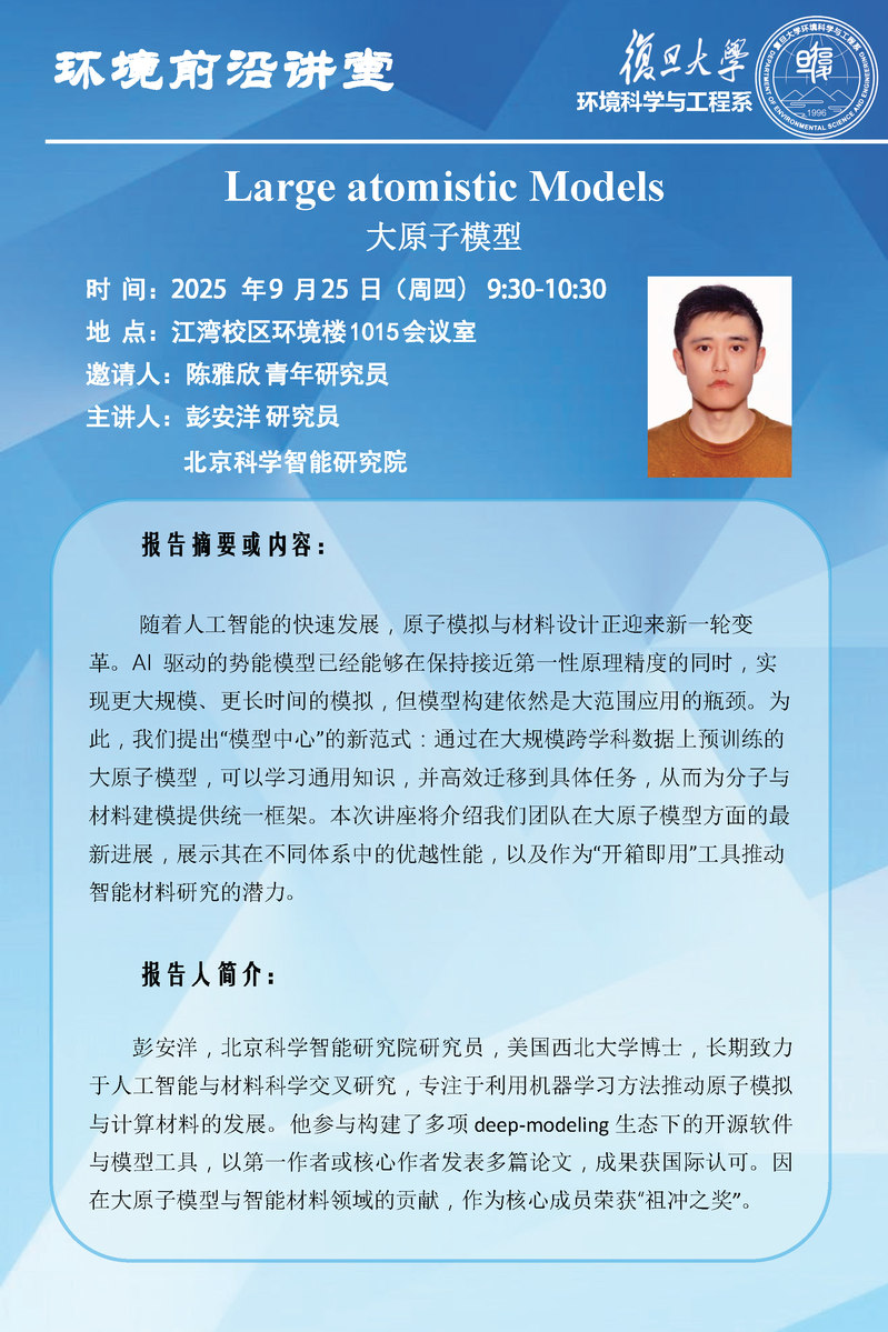环境前沿讲堂 | Large atomistic Models 大原子模型