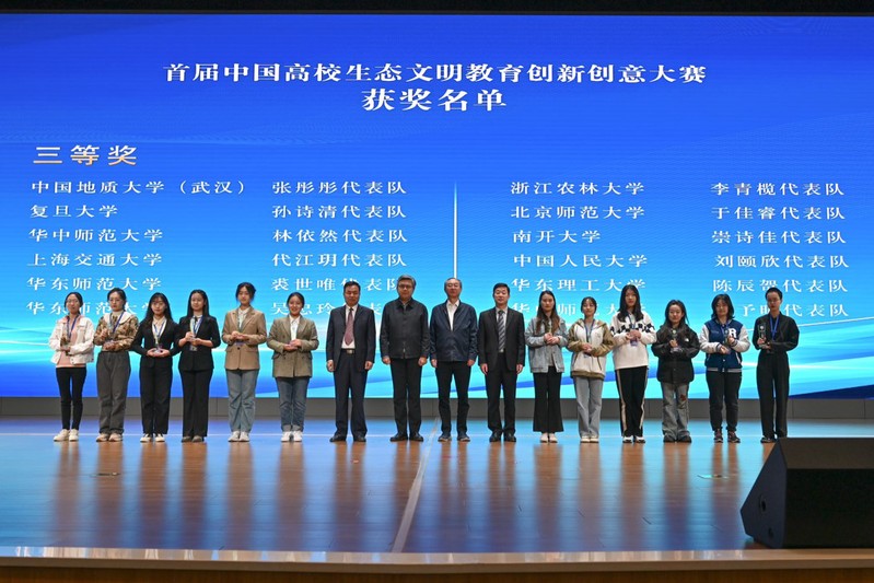 据悉,中国高校生态文明教育创新创意大赛由中国高校生态文明教育联盟主办,以推动中国高校学生群体生态文明教育的科研、教学和实践活动为宗旨。此次大赛共征集到177份投稿作品,最后有24支队伍挺进决赛,共评选出一等奖4队、二等奖8队、三等奖12队。