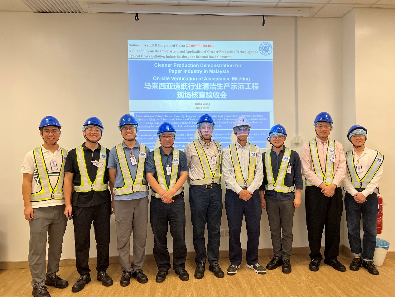 2023年9月20日至9月25日,由我系王玉涛教授领衔,联合复旦大学和华南理工大学研究人员,会同来自清华大学、北京大学、山东大学、University of Nottingham Malaysia、Universiti Tunku Abdul Rahman等国内外专家,赴马来西亚造纸企业(Vinda Malaysia Sdn. Bhd.)开展海外清洁生产示范工程现场验收工作。该示范工程的顺利实施,为“一带一路”共建国家典型重污染行业实现低碳化、标准化、数字化、智能化转型升级提供了参考,对“一带一路”共建国家提升工业清洁生产水平具有重要意义。