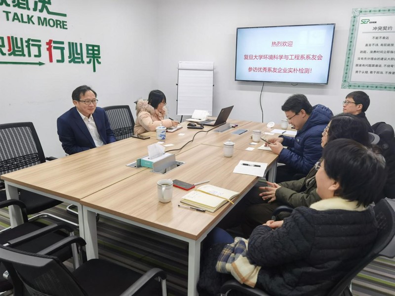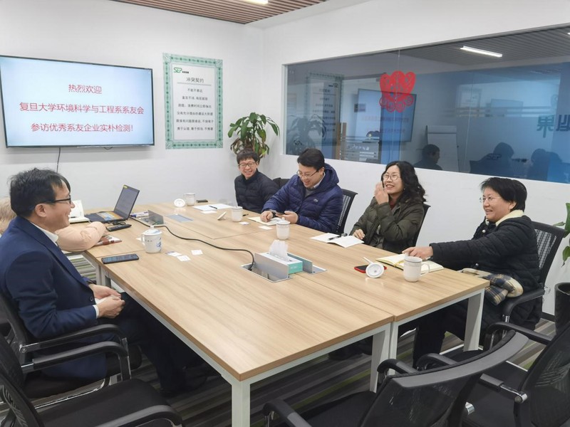 校友会陈昊雯、周珉、王维、杜建飞一行到优秀系友企业实朴检测技术(上海)股份有限公司(证券代码“301228”,以下简称“实朴检测”)交流走访,与实朴检测董事长杨进及公司相关技术人员等进行了深入的沟通。