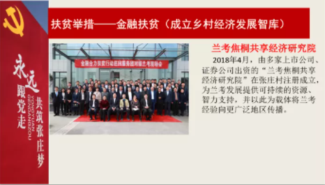 在产业扶贫方面,引入新三板企业,探索文化旅游扶贫,促进村企合作、壮大村集体经济