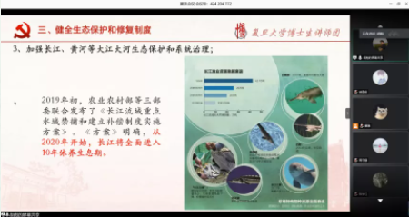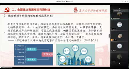 团校邀请了博士讲师团的胡彪老师作为主讲人。为帮助同学们更好地理解习近平生态文明思想,领会环境领域的国家治理体系和治理能力现代化,胡彪老师从环境管理专业的角度,介绍了四个议题: