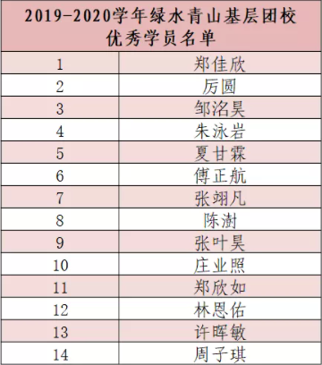 根据结业考试、出勤情况、感想反馈三方面综合考评,本学年团校所有学员都顺利结业,并评选出了14位优秀学员: