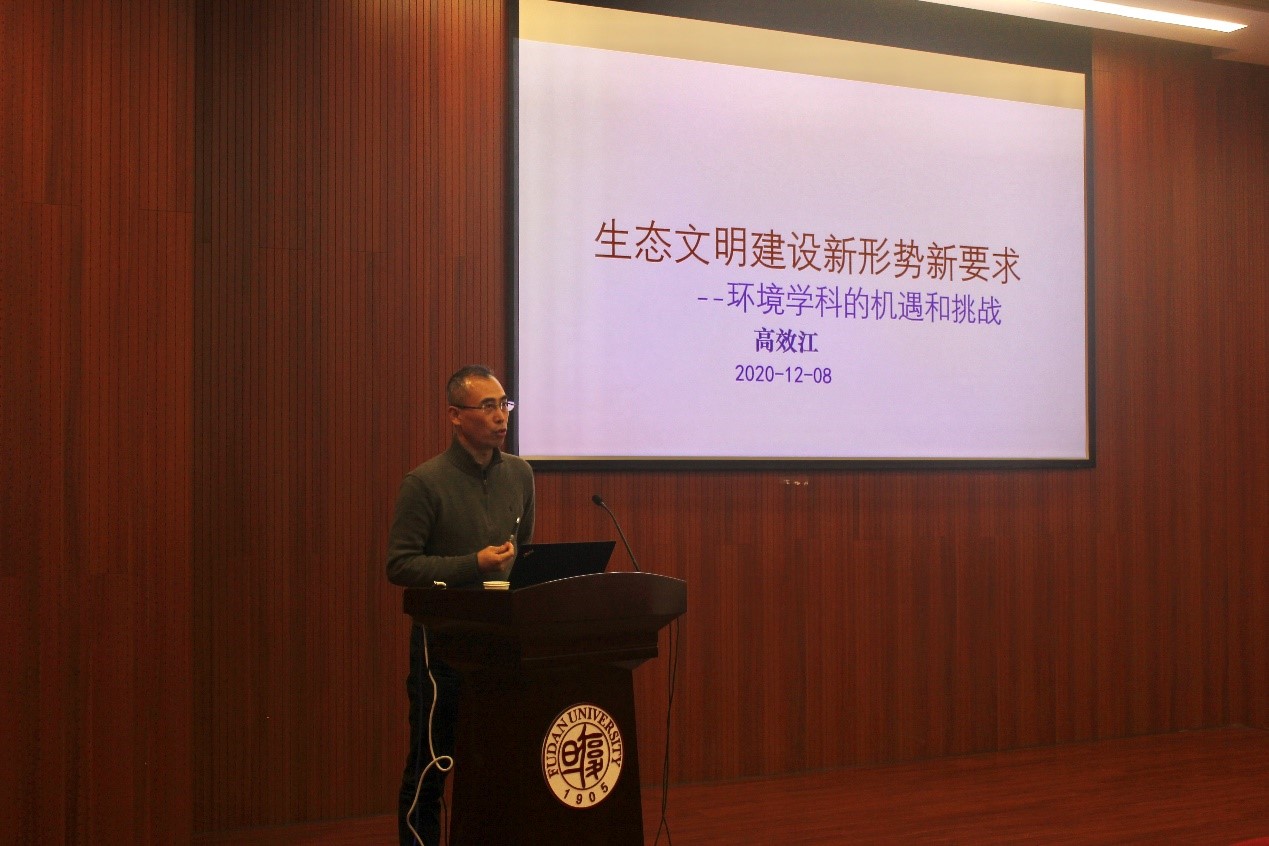 随后,环境系党委书记高效江为全体师生党员做了题为《生态文明建设新形势新要求——环境学科的机遇和挑战》的“四史学习”专题思政报告。高书记结合习近平总书记关于生态文明和立德树人根本任务的论述,指出要在深入学习十九届五中全会精神的基础上,全面贯彻党的教育方针,坚持立德树人,加强师德师风建设。高书记回顾了我校和我系环境学科的发展历程,阐明了我国经济社会发展新形势下环境学科所面临的机遇与挑战,指出在十九届五中全会要求建设高质量教育体系的大背景下,环境学科也将转入高质量发展阶段。高书记对我系的育人工作和学科发展提出了中长期发展规划和建设目标,同时寄语环境系师生,希望大家能够扎根中国大地,助力绿色发展,为实现生态文明建设的新进步作出贡献。