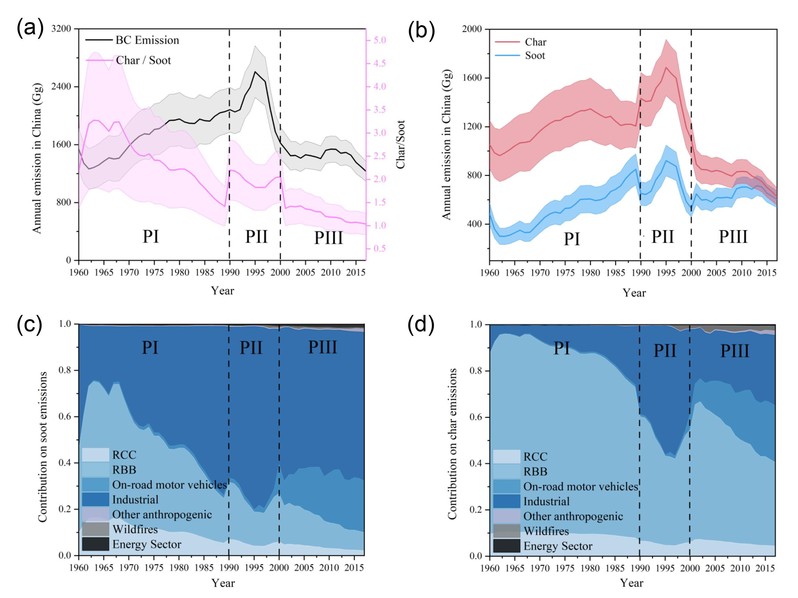 近日,我系陈颖军课题组同广州地球化学研究所张干教授合作Nature communication上发表了题为“Char dominates black carbon aerosol emission and its historic reduction in China” 的论文。文章提出黑碳并非是一类统一的物质,而可根据其热解温度,理化性质与源排放特征在大气中被一分为二。研究首次提出其中的Char组分是过去六十年间中国黑碳排放的主体,也将是未来减排的主要关注目标。因为这一组分主要来自低温燃烧产生,且与Soot相比更容易被减排。