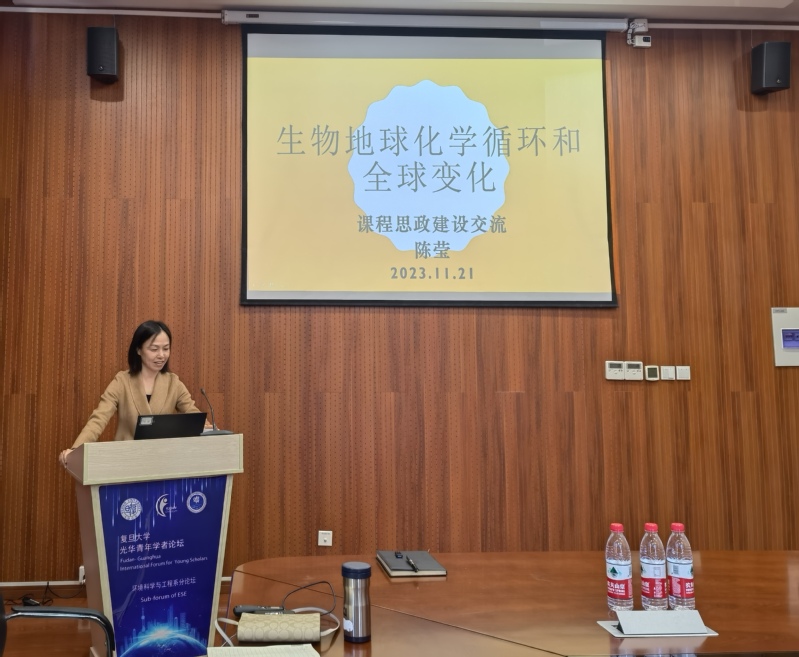 在分享环节,陈莹介绍了“生物地球化学循环和全球变化”研究生课的建设。