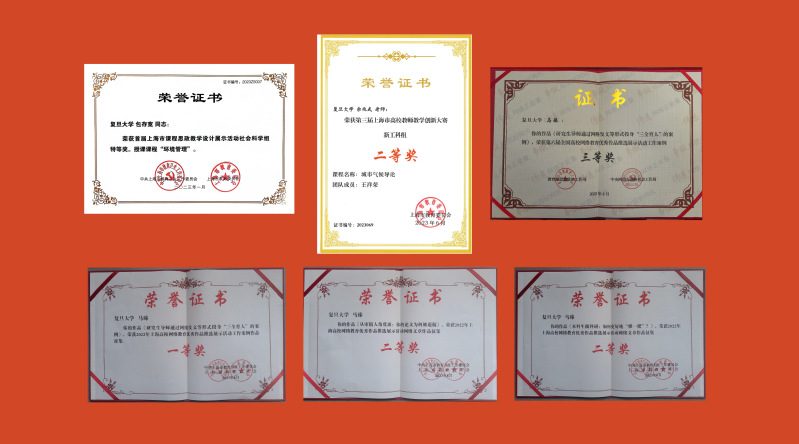 环境系研究生工作组获复旦大学学生思想政治工作先进集体,2021级硕士1班获研究生优秀集体标兵。高效江老师获2023届本科毕业生心目中的好老师。王琳老师团队获得2023年度十佳“三好”研究生导学团队提名奖。辅导员王晋获研究生辅导员风采奖,辅导员杨茜迪获本科生辅导员特色风采奖。