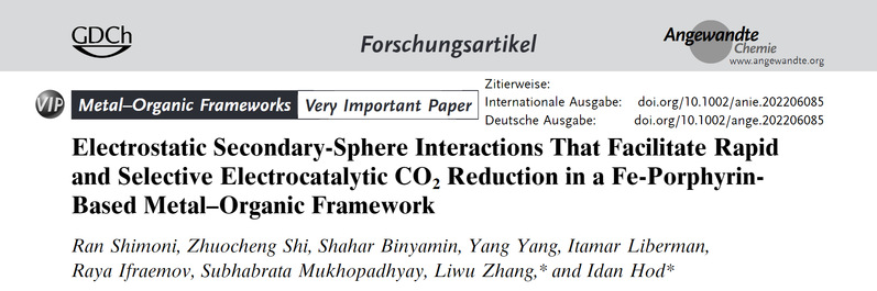 近期,Bet365中文版app-Bet365手机版下载 张立武课题组与以色列本古里安大学IdanHod课题组合作开展了通过调节靠近催化活性位点的静电相互作用来促进电化学CO2还原效率和选择性。探索了基于铁卟啉(Hemin)改性的Zr-BTB,通过连接一个阳离子官能团(3-羧丙基)三甲基铵(TMA)到铁卟啉活性位点附近来调节静电相互作用。发现TMA在催化过程中对表面结合的CO中间体施加了静电稳定作用,从而大大提高了CO2到CO的转化率和选择性。通过改变TMA的表面密度和电解质的离子强度,进而改变静电相互作用的程度。以上设计系统地调整了电催化选择性,几乎达到了100%的CO2转化为CO。